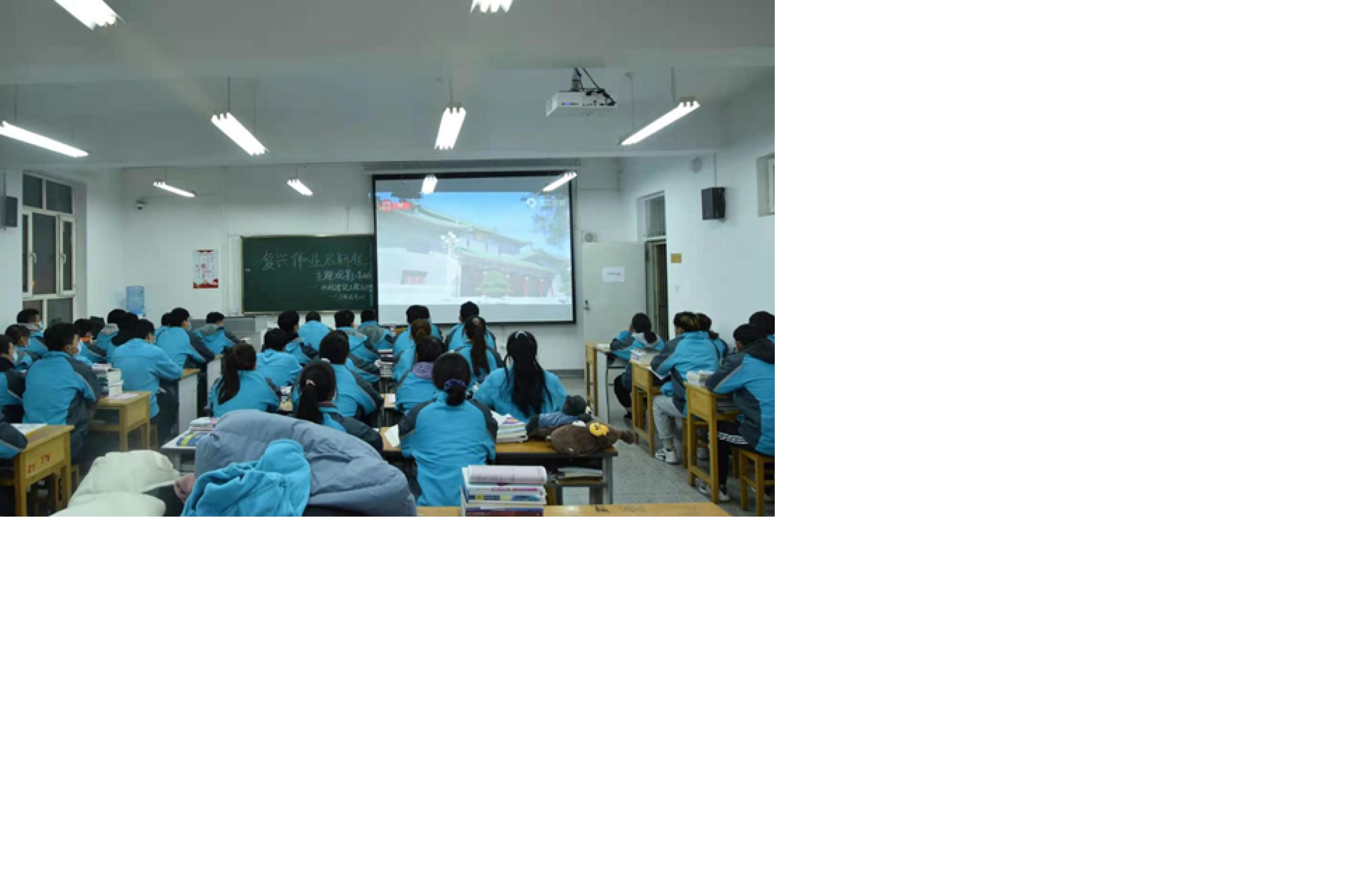 2020年11月23日星期一水建分院师生利用晚自习的时间集体观看;《复兴伟业启征程—一份历史性纲领的诞生》电视议政片,并持续深入学习十九届五中全会精神。