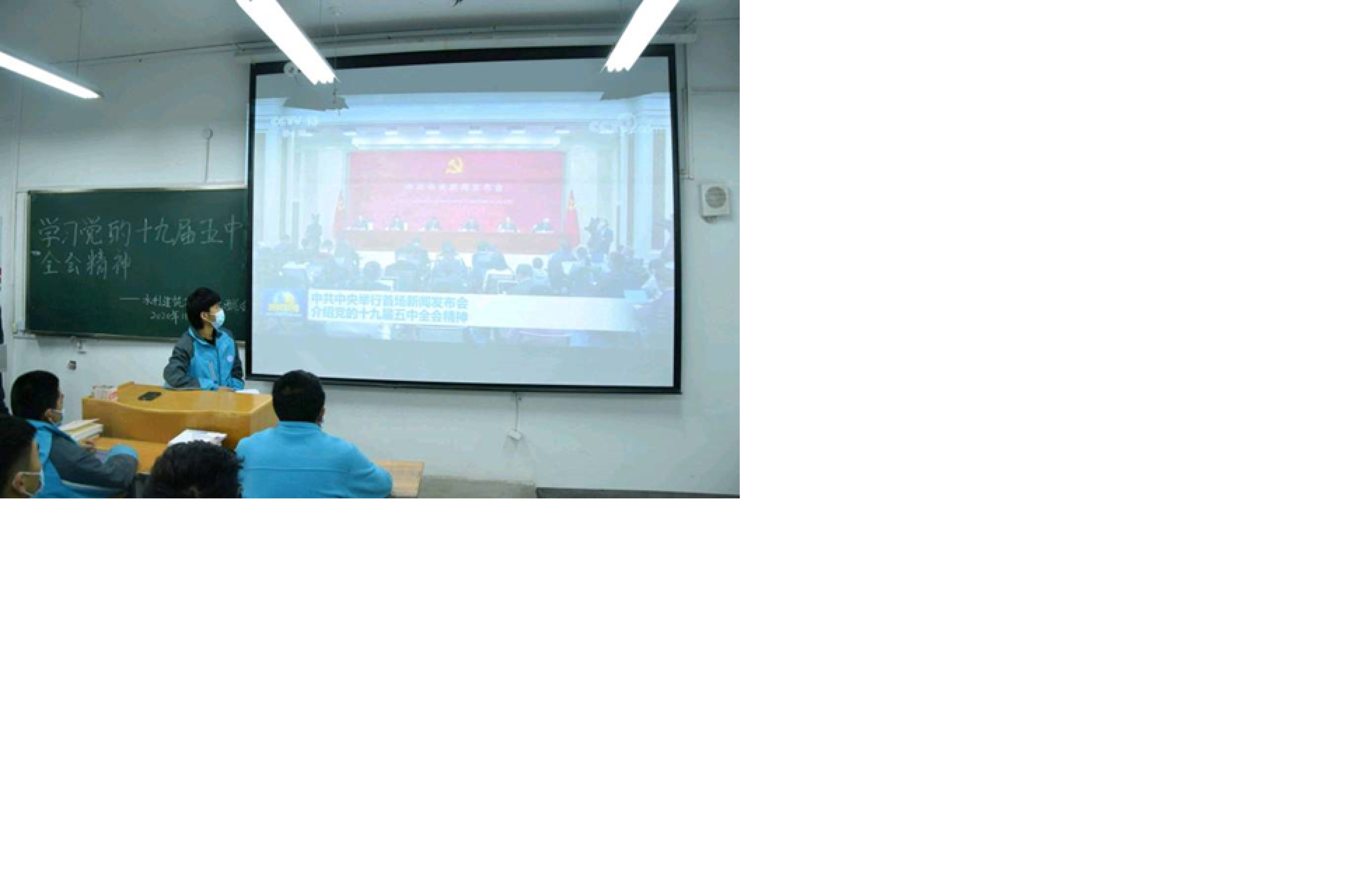 水建分院全体团干部和广大青年团员于2020年11月25日晚自习在301教室集体学习十九届五中全会精神《中共中央关于制定国民经济和社会发展第十四个五年规划和二〇三五年远景目标的建议》,本次团课由团支部副书记赵晨同学带领学习。