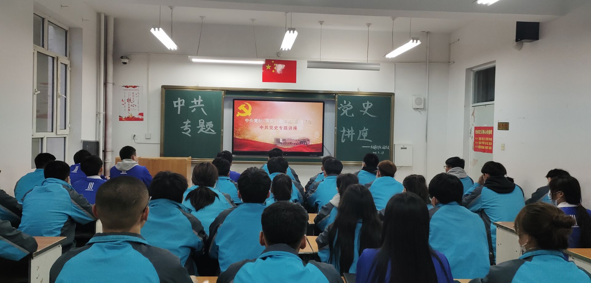 2021年3月29日,Beat365中文官方网站水建分院积极组织入团积极分子,于前楼314观看党史、新中国史相关的主题讲座视频。