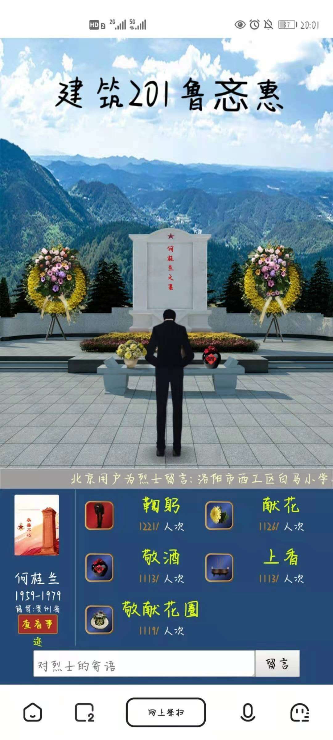 通过为革命烈士献花、留言等形式,参与网上祭扫,缅怀革命烈士,共同迎接清明节的到来。大家点击进入“网上祭先烈”版块,英雄纪念碑、人民英雄纪念碑浮雕图在映入眼帘,同学们纷纷在页面上输入班级以及自己的名字,点击“鞠躬献花”,并在网页下方留言“不忘先烈抛忠骨,弘扬革命精神,争取今后能为祖国和人民做出更大的贡献……”大家通过这种方式抒发着对革命先烈的哀思之情。