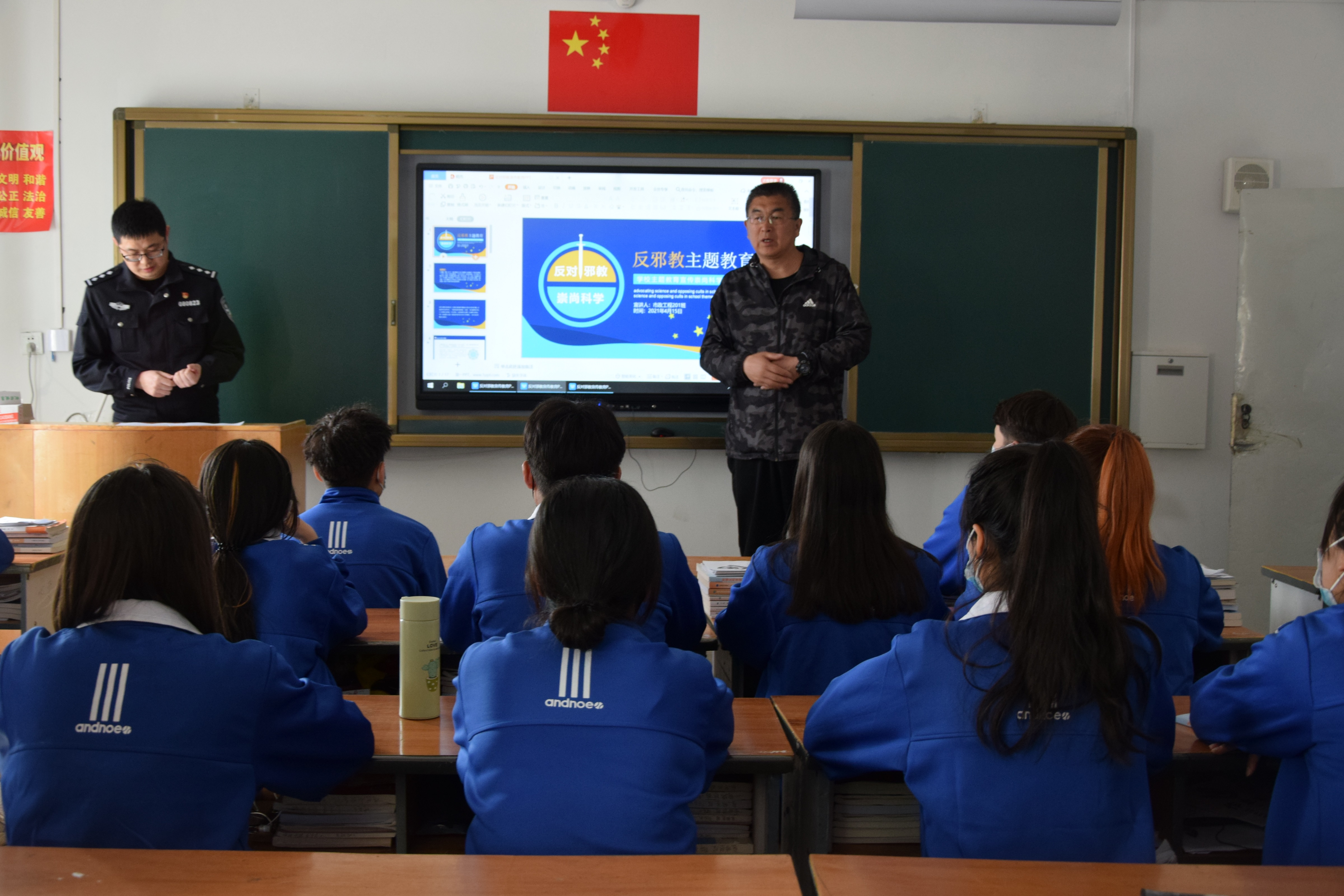 学校是需要重点防范邪教入侵的场所。此次反邪教宣传进校园活动,通过发放反邪教知识手册、张贴宣传海报、在“中国反邪教”公众号上电子签名等形式营造了校园反邪教的浓厚氛围。活动中,东三路派出所民警讲解了“什么是邪教”、“邪教组织的特征”、“邪教组织的危害”等相关知识,使师生们了解了邪教蛊惑、蒙骗他人,危害社会的手段,对邪教的本质有了更深刻的认识,切实增强了对邪教的辨别能力和防范意识。