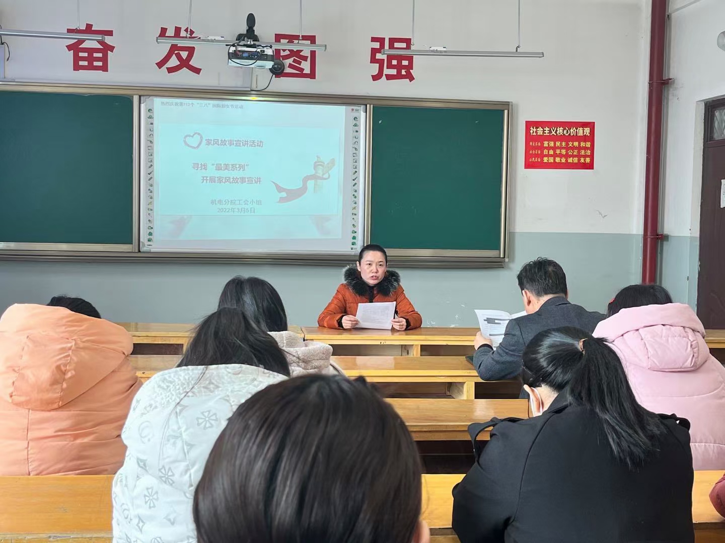 2022年是进入全面建设社会主义现代化国家、向第二个百年奋斗目标进军新征程的重要一年。开学伊始,党委史书记在全体教职工大会上就习总书记关于职业教育的创新理论宣讲激励和鼓舞了广大女职工的干劲和士气。3月5日,学院机关、分院的女教职工开展深入基层服务学生及美化环境巾帼志愿者活动,用实际行动践行雷锋精神。学院妇联、各级女工委积极组织参与“情系女职工 法在你身边”知识竞赛,提高广大女职工的维权意识和能力。学院各分院各部门积极组织开展了以“强国复兴有我”为主题的系列“六个一”即一场党的创新理论宣传教育、一次主题教育、一场维权宣讲、一次书香三八活动、一次巾帼志愿服务、一次寻找“最美系列”及家风宣讲会活动,引领广大女教职工巾帼心向党,喜迎二十大。