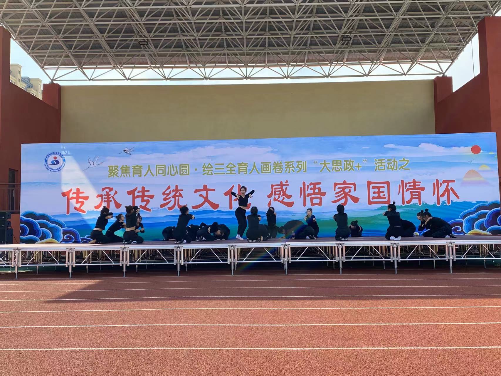 4月3日下午,学院一期操场上,一首首精彩的曲目、一阵阵高昂的歌声,《把一切献给党》《绣红旗》《这里是新疆》等歌曲演唱,民族乐器弹布尔独奏《花儿为什么这样红》,古筝演奏《秦桑曲》,竹笛《春到湘江》,吸引了周边上千名同学前来一睹为快。观众同学们表示“这些经典歌曲,会唱的我们大家会一起大合唱,唤醒了我曾经的家乡记忆,也激发了大家内心的爱国主义情怀”。 在二期操场上,舞蹈演出在温暖而深情的古典舞《水调歌头》中展开,各民族舞蹈纷纷登上舞台,民族舞蹈《帕米尔之情》《刀郎舞》粗犷矫健、洒脱刚劲,引得在场的同学纷纷加入其中翩翩起舞。“落其实者思其树,饮其流者怀其源”,通过表演者们的精彩演绎,现场观众感悟着中华民族的传统美德和精神信仰,家国情怀凭借清明节实现更深层次的融合。另一群同学在操场上挥毫泼墨,或隶书、或行楷,将古诗词和书法的相互融合,以写字来育人,把国学经典深入学生内心,更好地展现祖国灿烂的文化底蕴。