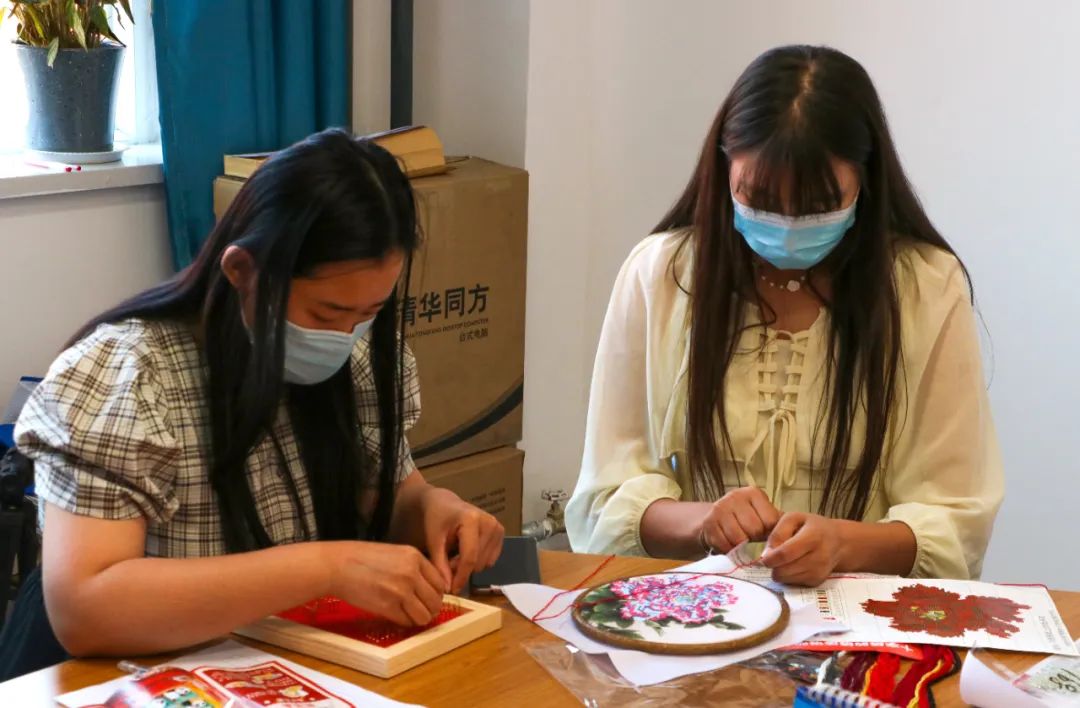 活动现场,“巧手们”耐心细致将一份份材料包变成精美的手工艺作品,包括超轻黏土、衍纸画、3D金属拼装模型、掐丝珐琅、十字绣等等,墨攻书画社成员现场为广大青年书写并送去祝福。