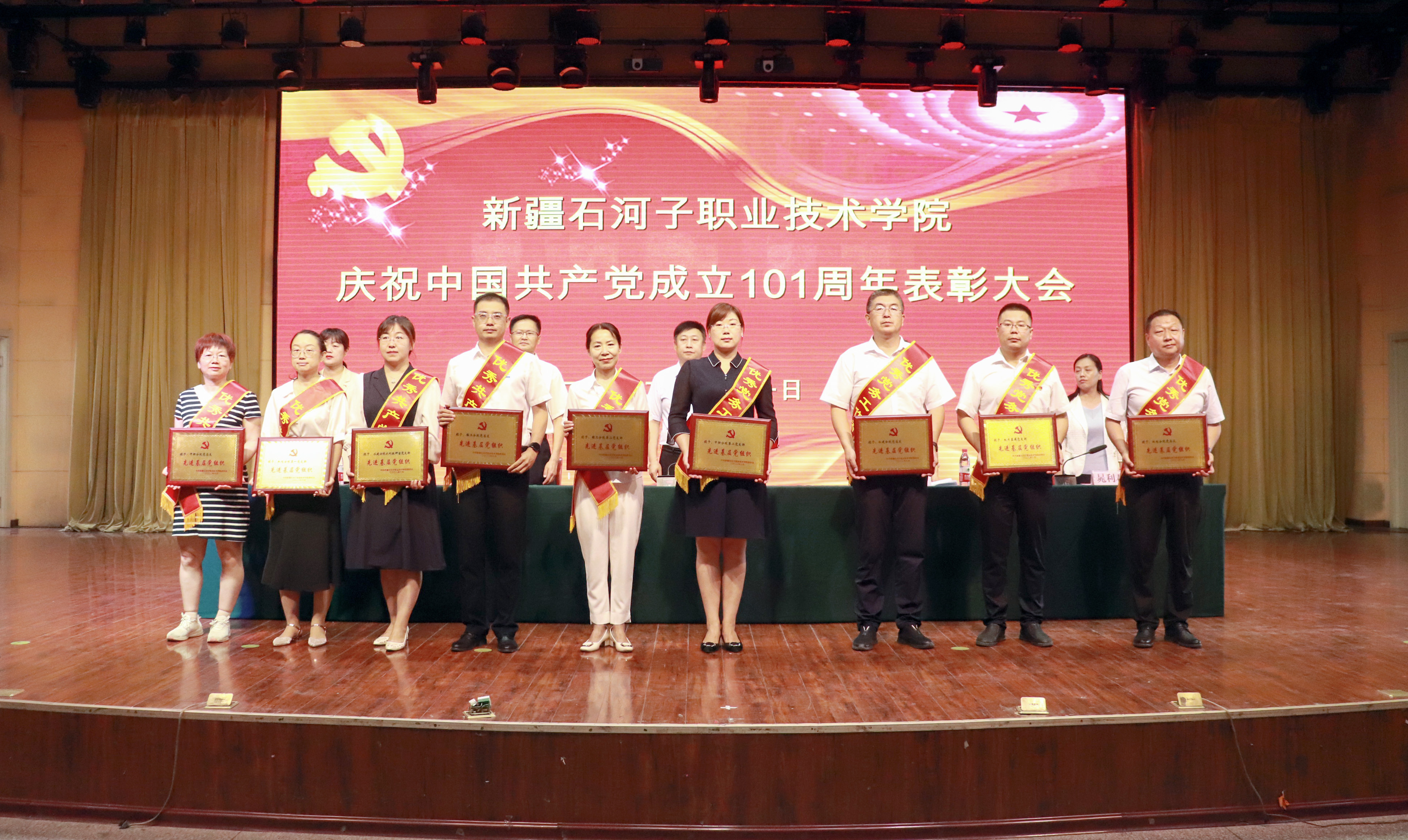 6月27-29日,学院党委组织看望慰问了兵团优秀党务工作者及学院困难党员,为他们送去组织关怀和“七一”问候。6月29-30日,学院各党总支直属支部根据工作实际,创新形式和思路,组织支部党员和入党积极分子到军垦博物馆、艾青诗歌馆、爱国主义教育基地等红色教育基地进行现场主题党日活动。7月1日上午9时30分,学院全体党员在二期操场参加升国旗仪式,在雄壮的国歌声中,五星红旗冉冉升起,现场所有党员向国旗行注目礼,对伟大祖国致以无限敬意。10点在学院综合楼四楼召开“奋力新征程 喜迎二十大”七一表彰大会,学院党委副书记、院长林炯,副院长耿荣、李卫,纪委书记晁利君、副院长马彩梅及学院全体党员参加了表彰大会。大会由副院长耿荣主持。机电分院副院长尹君带领新党员代表及全体党员重温了入党誓词。纪委书记晁利君宣读了学院优秀共产党员、优秀党务工作者、先进基层党组织、党课优秀课件获得者表彰名单等。轻工分院武亮老师作为优秀党员代表发言。林院长讲话指出在学院发展建设过程中,各级党组织和广大党员立足平凡岗位、忘我拼搏实干,付出了艰辛努力、做出了突出贡献,涌现出了一大批先进典型。希望获奖者珍惜荣誉、再接再厉,为学院“十四五”发展继续作表率、立新功;各级党组织和广大党员要以受到表彰的先进集体和先进个人为榜样,学习他们的先进事迹和崇高精神,加强自身建设、凝聚各方力量,对标先进、争创一流,为推动新时代学院高质量发展做出新的更大贡献。