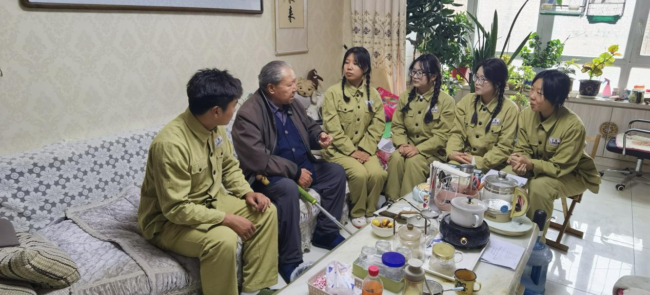 中午,大家又来到胡有才老连长家里,听老连长讲兵团故事。听着老连长声情并茂、情绪激昂,一个接一个地讲述着当年鲜活的故事,还用手掌现场打起了快板,仿佛走进了一座博物馆,那些军垦战士的奋斗史、创业史,穿过时光隧道,扑面而来,真切又震撼。一上午的时光,师生们听着故事,回荡在耳边的不只是一段段历史,更是这座军垦城市的奋斗精神和灵魂。最后,胡有才老连长对大家说:“党的二十届三中全会提出要聚焦建设社会主义文化强国,提高国家文化软实力,我余生最大的心愿就是希望我们的下一代能传承弘扬兵团精神,让兵团精神融入一代代兵团人的血液中,成为兵团人精神的支柱。”