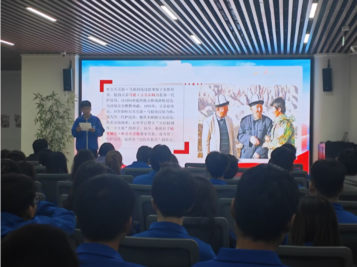 现代物流管理251班的蔡红伟、展娅星、包志霞三位同学分别讲述了习近平总书记身体力行践行孝道美德,以及周恩来、焦裕禄等老一辈革命家恪守孝道、敬老爱亲的感人故事。梁嘉辉同学分享了现代服务学院关心社区孤寡老人、信息与通信工程学院与石河子银铃养老院等校园与社区间的敬老孝亲的真实事例。青马班钱文超同学以《帕米尔上的坚守:吐尔买买提·马提的家国情怀与孝亲传承》为题,讲述了吐尔买买提·马提一家人40余载传承坚守帕米尔高原,将青春奉献给祖国边疆、亲情三代人的动人事迹。