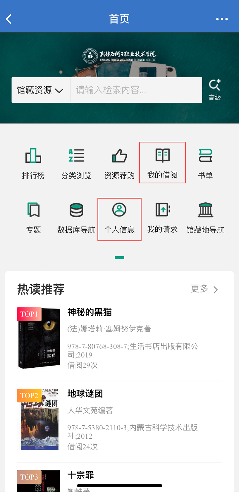 2.可在“我的图书馆”内“个人信息”中查看、修改个人信息。