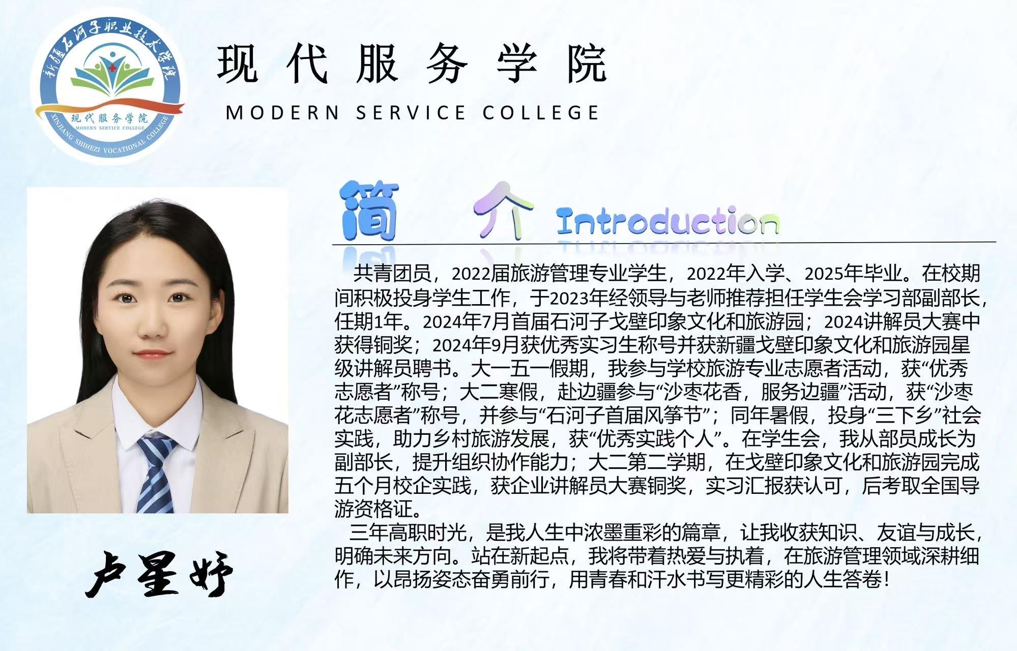 2022级旅游管理专业优秀毕业生
