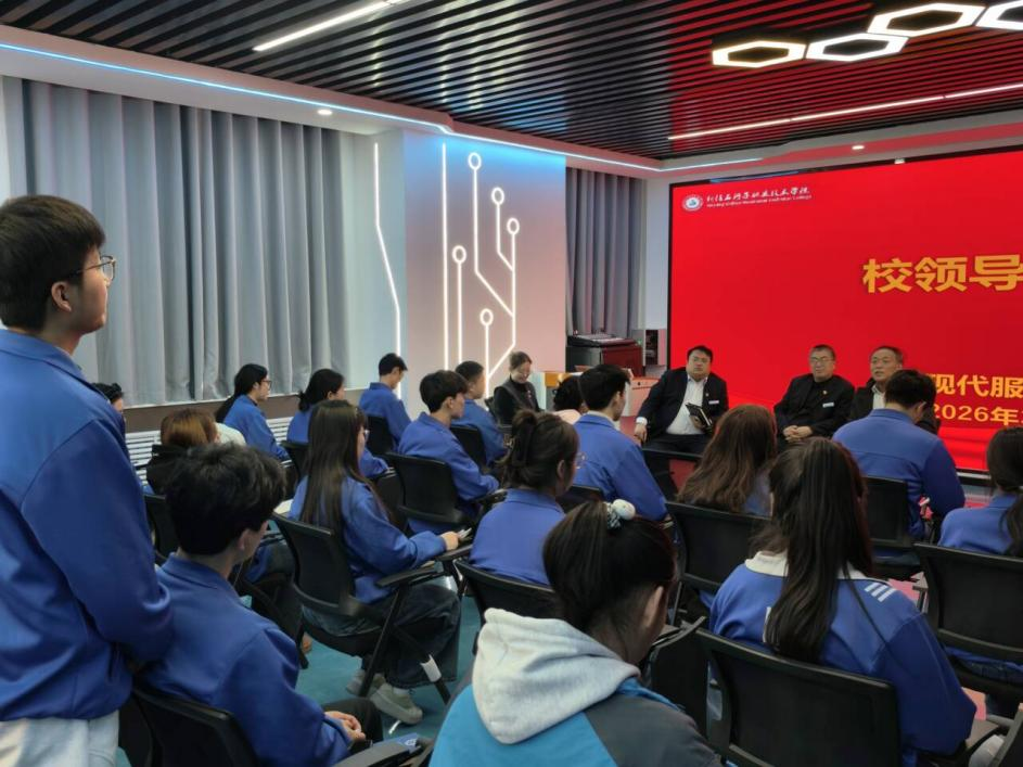 (谢雨昕 王似雄 报道)为畅通校生沟通渠道,精准掌握学生学习生活状况与思想动态,切实解决学子急难愁盼问题,2026年3月11日下午,学校领导接待日活动在培智楼旅游大数据实训室顺利开展。学校党委书记史文革携相关部门负责人走进现代服务学院,与来自各年级、各专业的20余名学生代表围坐一堂,开展面对面、心贴心的座谈交流。