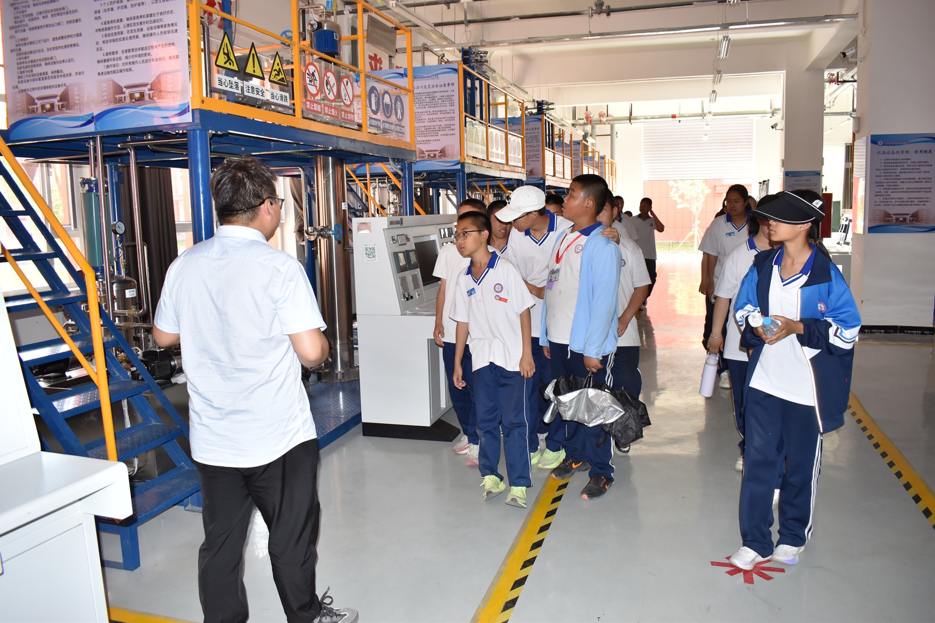 本次活动将红色文化传承与职业教育体验深度融合,将专业课程拆解为适龄化体验项目,通过具象化的职业场景,帮助学生理解‘专业-职业-产业’的内在关联,引导青少年建立初步的职业认知框架。马克思主义学院、食品工程学院(化工与环境工程学院)、机械电气工程学院的专业教师在实践教学基地展开沉浸式教学,学生们分批次参观了学校耕心树人广场、爱国主义教育基地、食品化工综合实训基地、工程实训中心,从红色历史中汲取前行力量,在职业教育体验中感悟工匠精神。