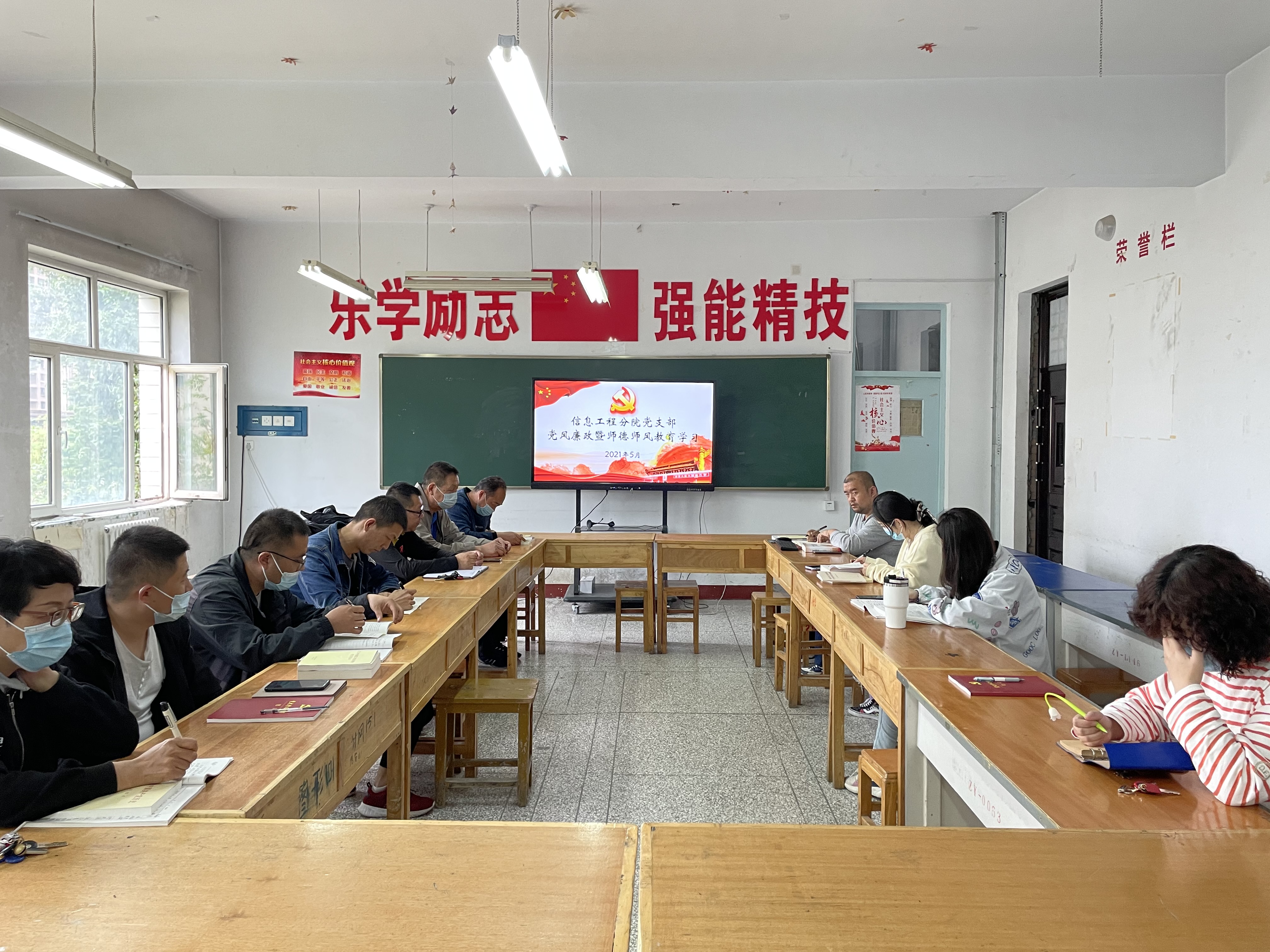 按照学院党委及纪委统一要求,信息工程分院每月坚持开展党风廉政主题教育活动。5月17日18:10,信息工程分院直属党支部组织全体党员在信息楼303室,开展“清风传家”党风廉政暨师德师风教育活动。活动由分院书记徐通主持。主要进行了“清风传家”——孙家栋同志事迹宣讲学习及优秀党员节目展播,播放了《榜样的力量——孔繁森》《党史教育——中国共产党为什么“能”》。