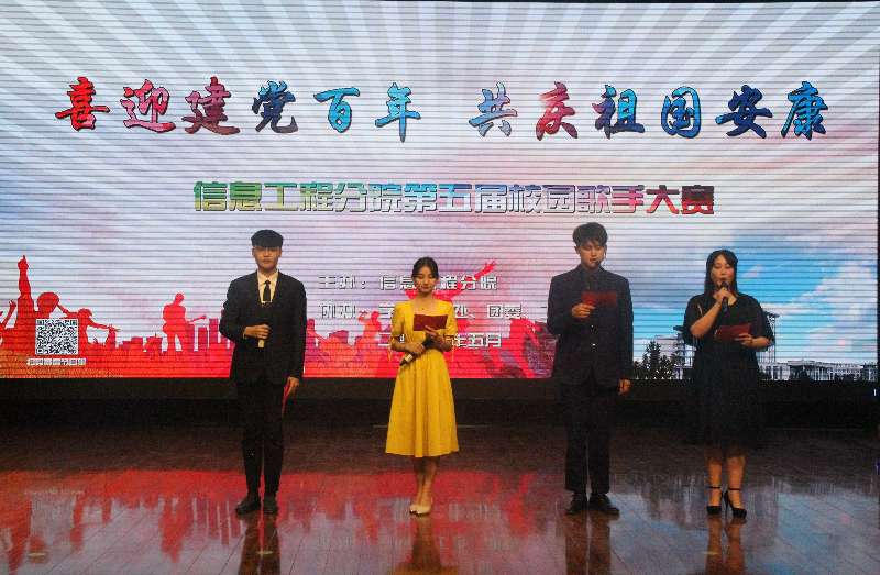 为了丰富校园文化生活,营造积极向上、健康文明的校园文化气氛,为学生提供展示自己才华的舞台,信息工程分院于2021年5月18日下午,在综合楼四楼阶梯教室开展了“喜迎建党百年,共庆祖国安康”第五届校园歌手大赛决赛。出席此活动的老师有:学院团委书记蒋小玉,学院纪委委员朱卫泉,分院书记徐通,分院副院长周鑫。