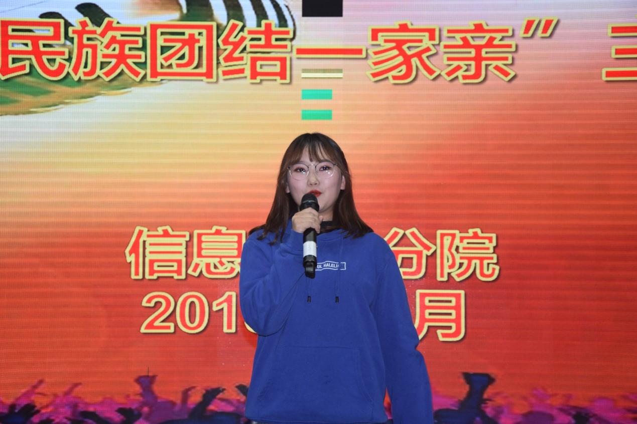 2019年10月23日下午6点,Beat365中文官方网站信息工程分院在综合楼四楼阶教开展了“不忘初心,牢记使命” 第一届“民族团结一家亲”主持人大赛。本次活动共有11名同学参赛,活动有幸邀请到了图书馆馆长陈建红老师担任本次活动的评委老师。