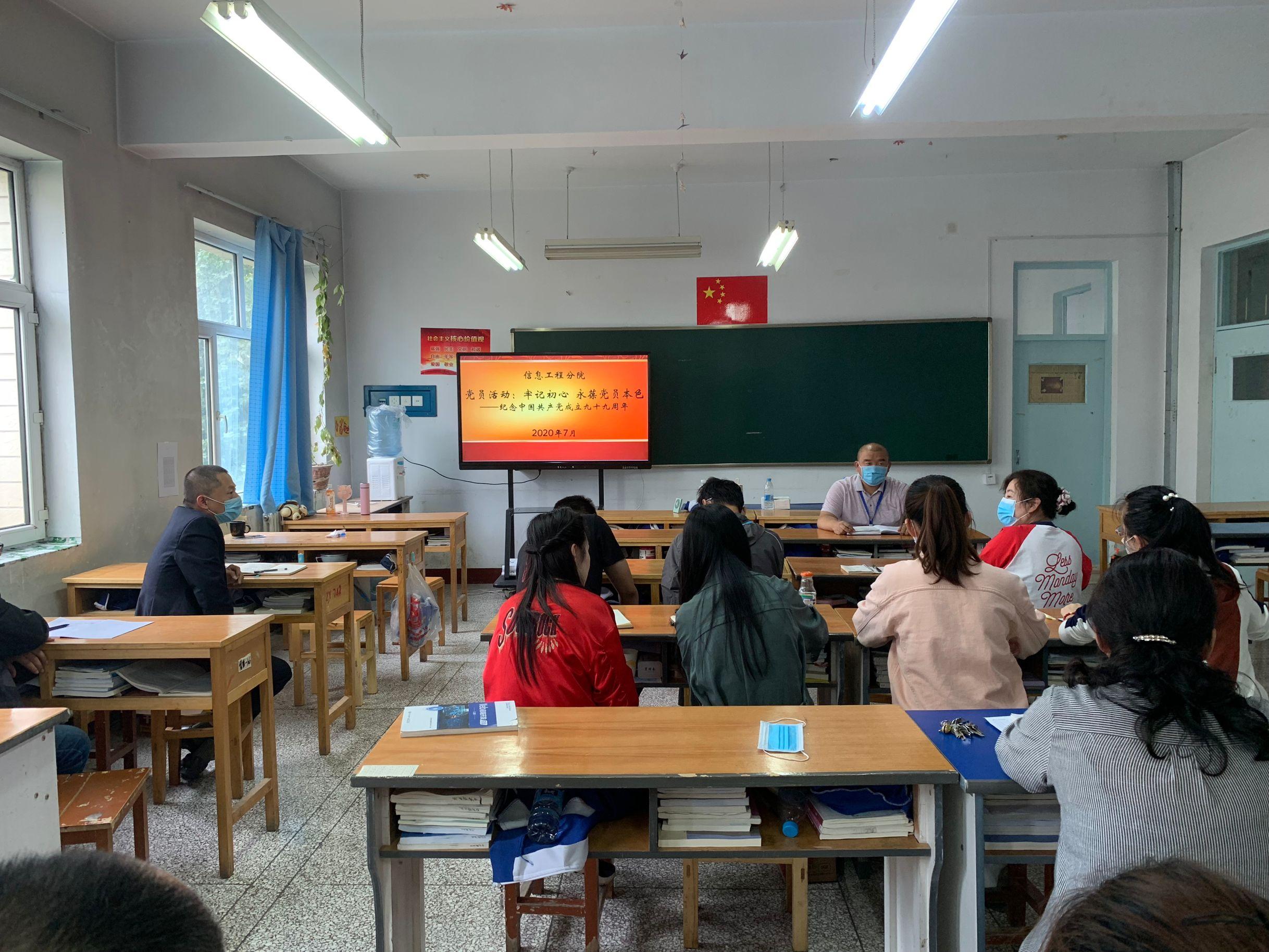 为纪念中国共产党成立99周年,进一步加强信息工程分院党支部党员队伍建设,发挥全体党员的先锋模范作用,增强党组织的凝聚力和战斗力。2020年7月1日,信息工程分院党支部组织分院全体党员教师及新发展预备党员、广大干部教师,一同开展了庆“七一”党日活动。