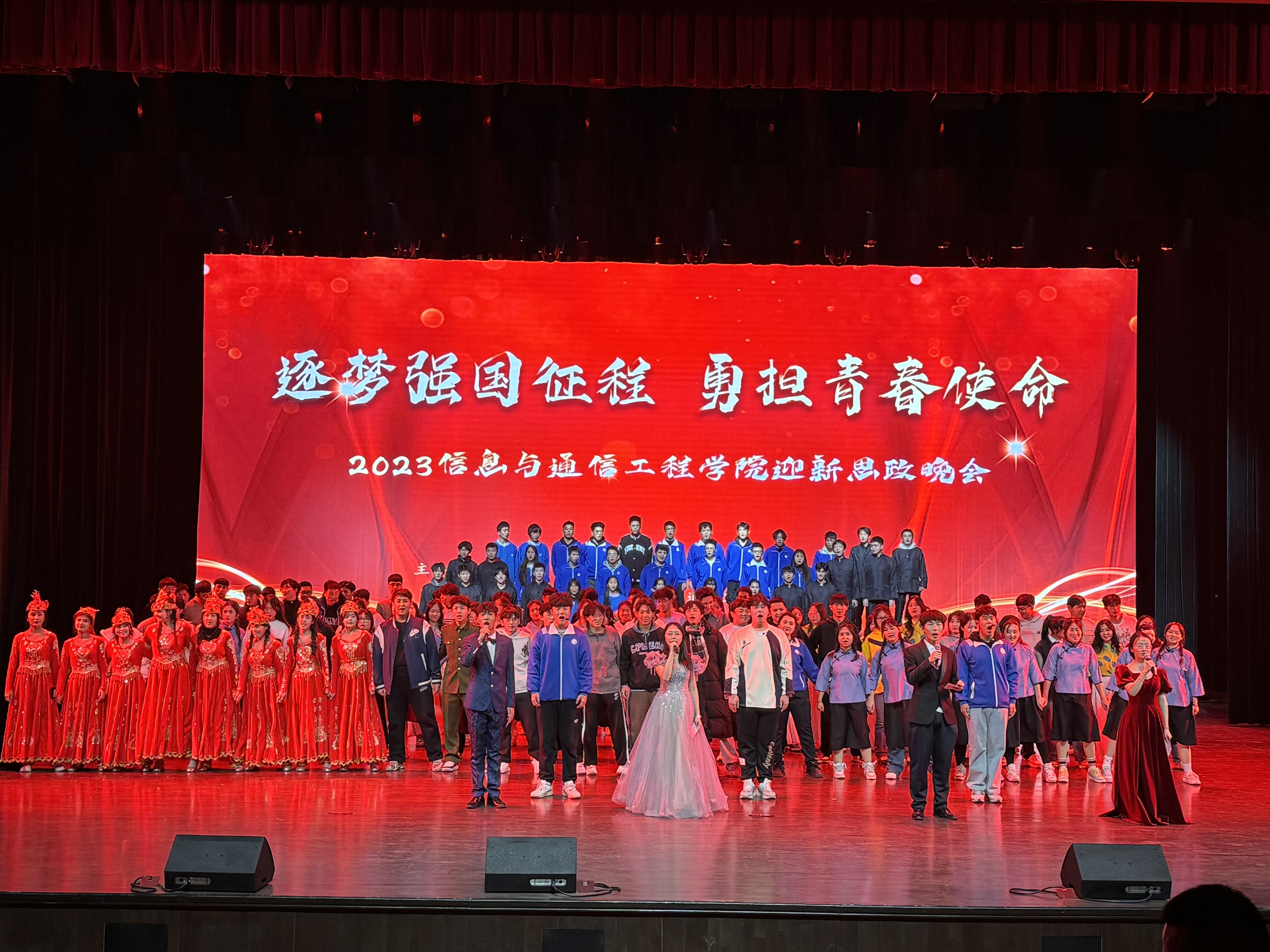 (崔安琪报道)2023年12月15日下午,信息与通信工程学院思政迎新晚会在学术报告厅圆满举办,全院师生满怀憧憬欢聚一堂,用歌声、舞蹈、小品、朗诵、话剧等形式表达对未来的期盼和对祖国的热爱。学院党委书记史文革、院长林炯,副院长马彩梅、储衍兵,以及各机关处室、二级学院的领导、嘉宾出席晚会。
