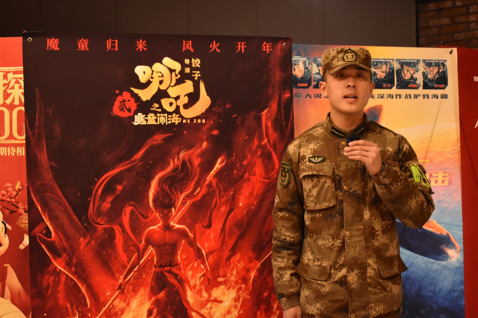 “请结合哪吒的成长,思考新时代青年如何将个人奋斗融入边疆建设。”“在互联网+时代如何运用技术创新更好地弘扬中华优秀传统文化。”观影前,思政教师以问题为导向,引导军士生带着更深刻的视角增加观影体验。影片放映期间,师生全神贯注,时而为幽默桥段欢笑,时而因高燃战斗场面振奋。当哪吒与敖丙携手冲破天元鼎时,引发全场师生热烈的掌声——死磕到底才能“杀出一条血路”,让同学们看到了一代代中国人逢山开路、前赴后继的样子。影片的3D建模、数字绘景以及原创音乐,为大家带来了震撼的视听体验,中国传统文化正通过不断创新的电影工业,焕发出新的生命力。