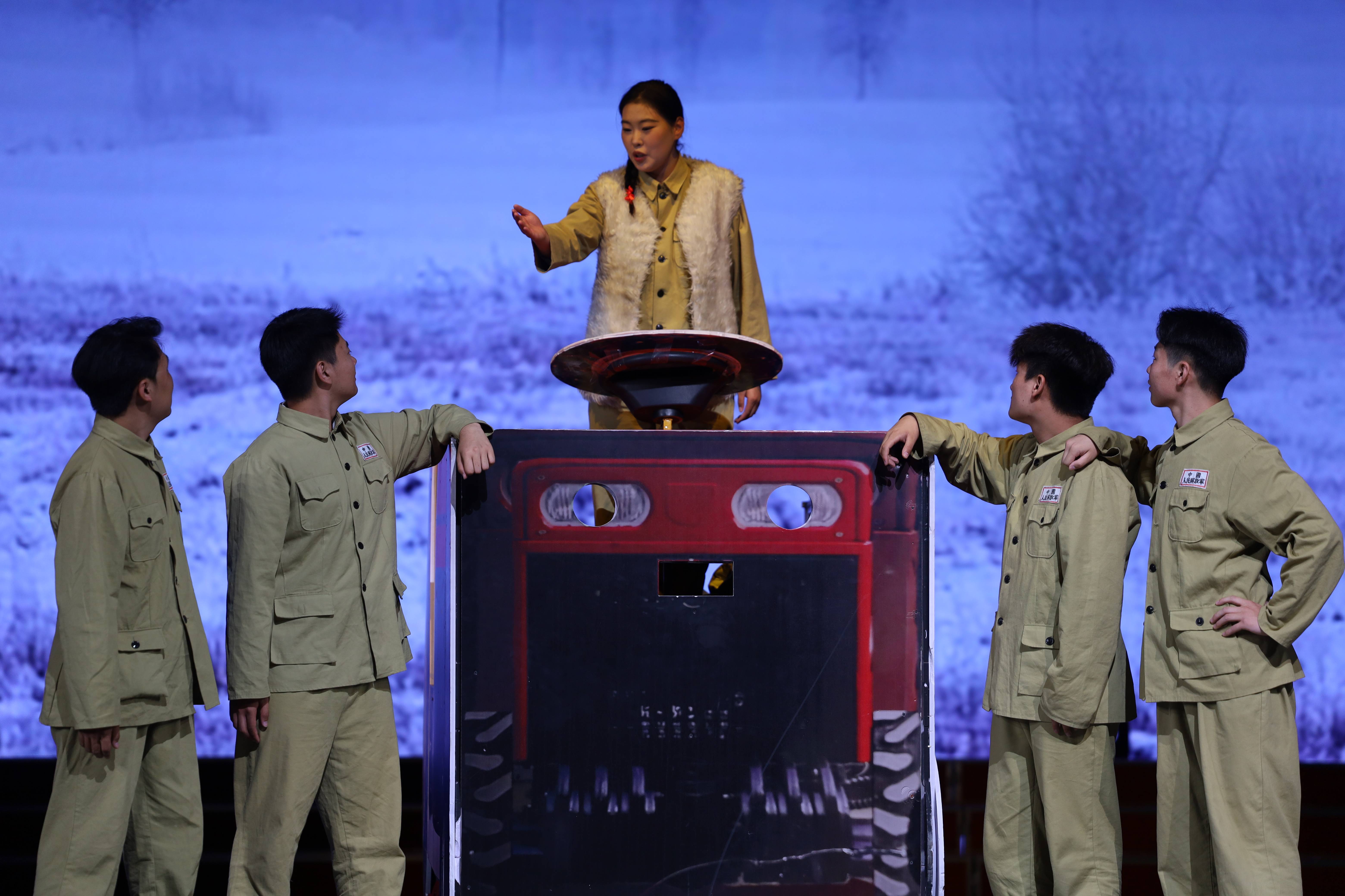 自2023年11月首演以来,《大漠誓言》已跨越兵团多个师市,在第三师图木舒克市、第四师可克达拉市等地完成十余场展演,成为传播兵团精神的移动文化名片。舞台灯光亮起的瞬间,观众仿佛穿越至那段激情燃烧的岁月。饰演第一代女拖拉机手金茂芳的马洁,用饱含深情的表演,将这位“全国劳动模范”带领各族群众开荒造田的故事娓娓道来;当军垦三代人向祖国报到时,舞台上颤抖的双手、坚定的眼神,无声诠释着“各族人民团结一心”的深刻内涵;当“请祖国放心,边疆有我!”的声声呐喊中,将观众带入那个激情燃烧的年代。