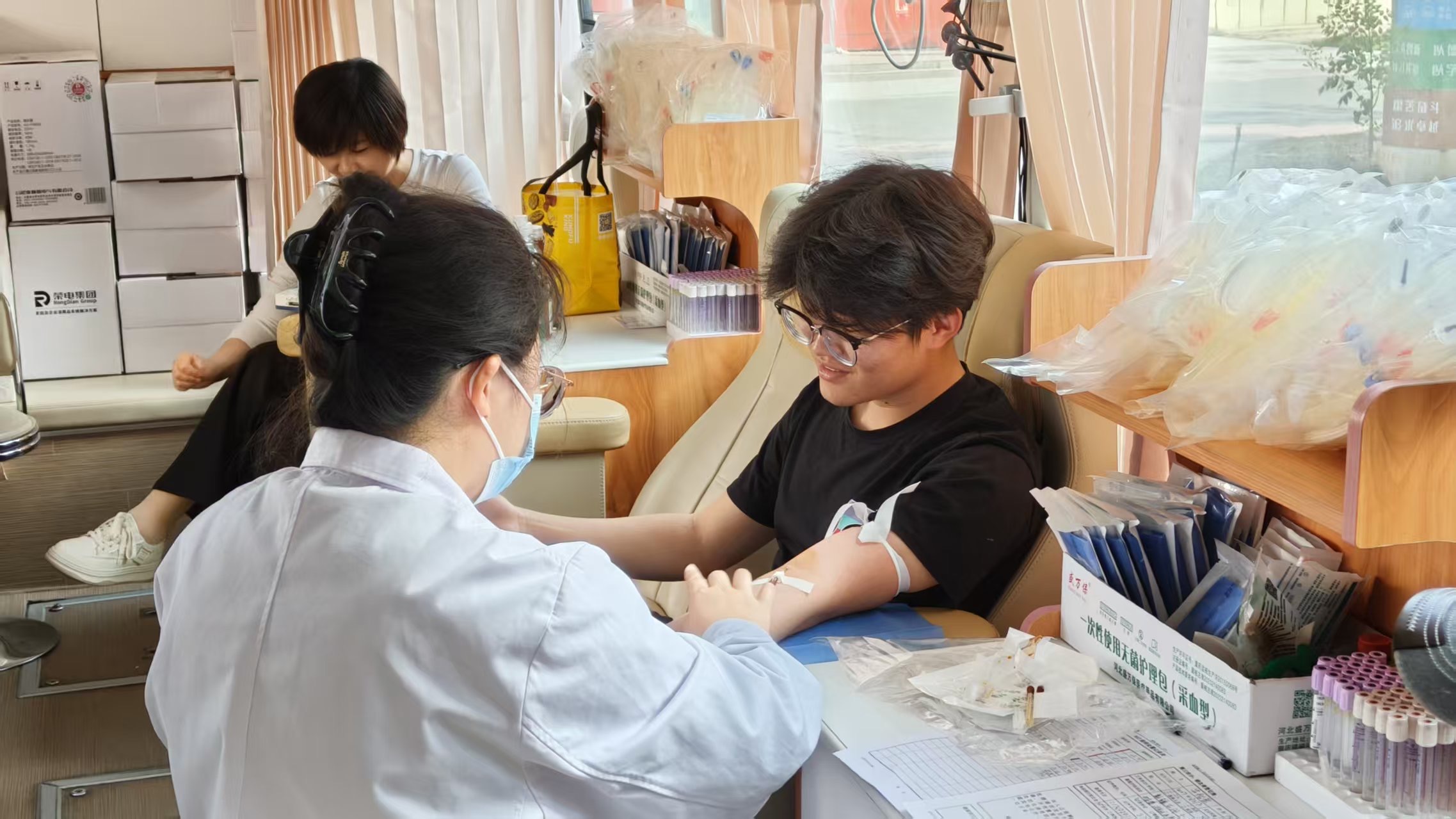 符合献血条件的志愿者们毫不迟疑,纷纷挽起衣袖,眼神坚定地配合采血工作。从排队等候到顺利完成献血,整个过程中大家相互鼓励、配合默契,用青春热血诠释青年一代的责任与担当。更令人动容的是,部分完成献血的志愿者并未立刻离开,而是主动留在现场,协助医护人员维持秩序、引导后续参与者、为刚献完血的同伴递上温水与营养品,让爱心在互助互动中持续传递,为活动增添了更多温暖。
