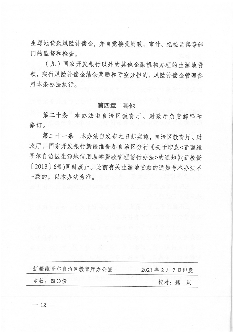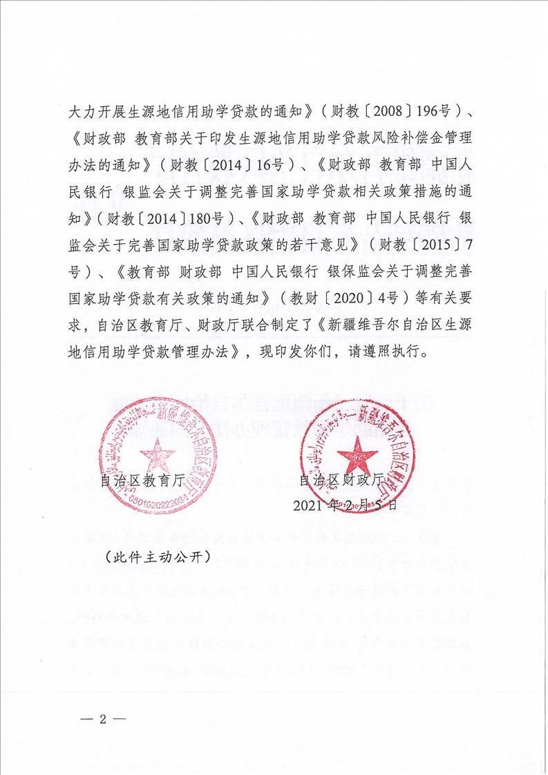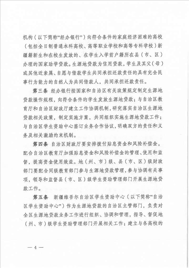 关于印发《新疆维吾尔自治区生源地信用助学贷款管理办法》的通知