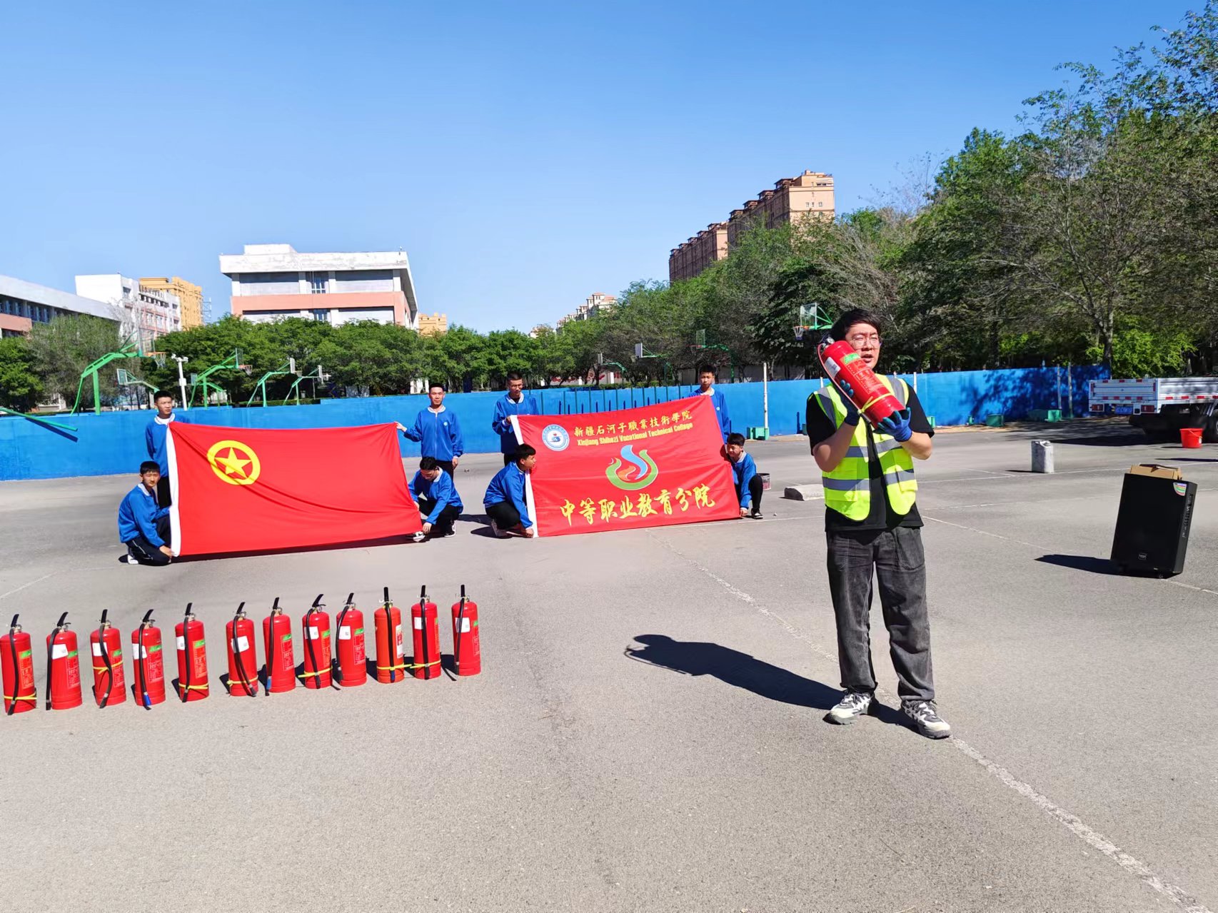 (公共基础学院 报道)2024年5月12日是第16个全国防灾减灾日,为进一步提高师生的消防安全意识和对火灾的应急扑救处置能力,中等职业教育学院在5月9日下午组织学院师生代表开展了消防安全培训暨消防演练活动。