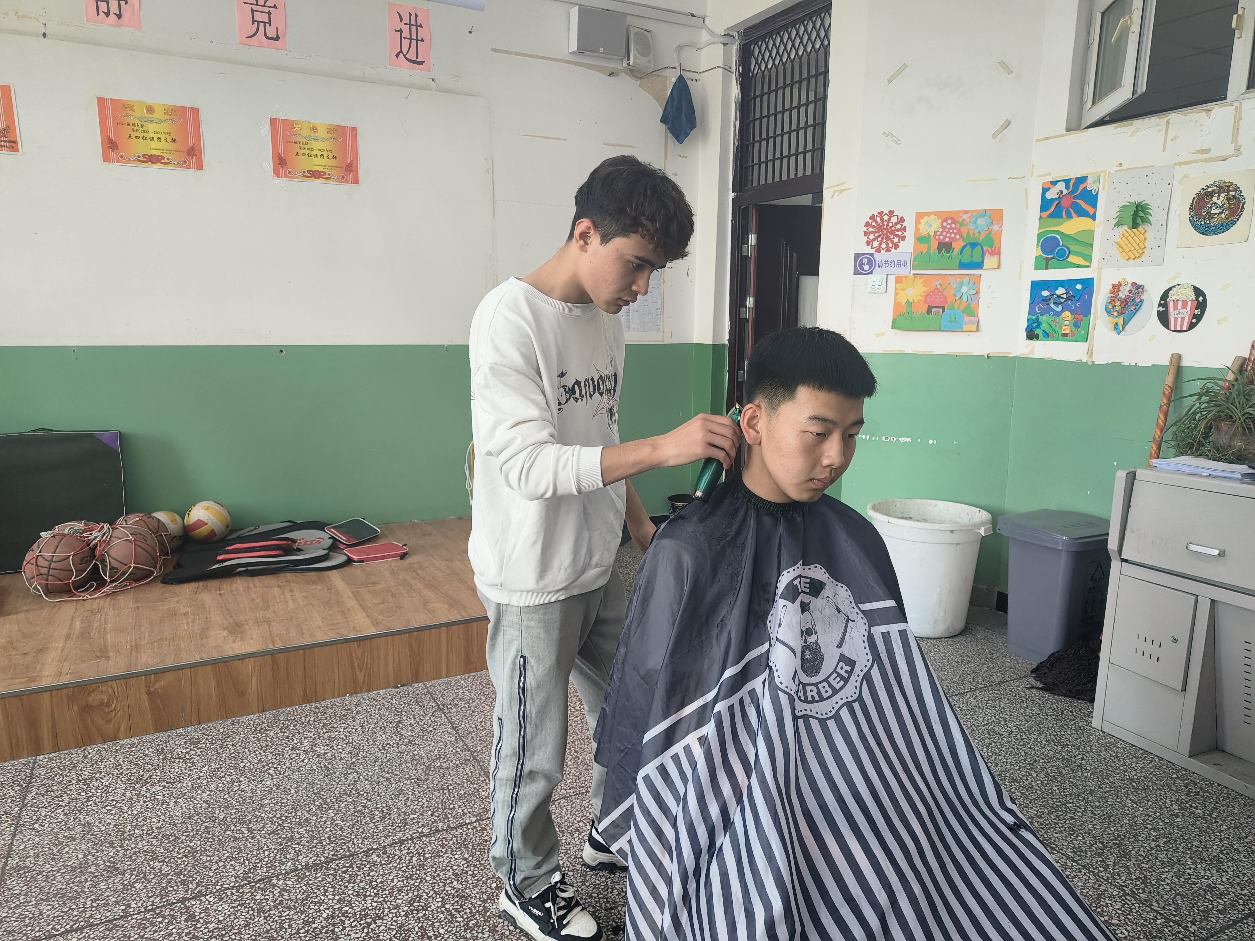 25汽修民族班的伊木然同学主动请缨,利用课外和周末休息时间,在学生宿舍门口为大家提供免费理发服务,帮助学生解决“头”等烦恼。理发现场,剪刀上下飞舞、电推嗡嗡作响,排队学生井然有序。理发后,同学们纷纷对“非专业”理发师技术赞不绝口,对志愿服务的同学表示感谢。