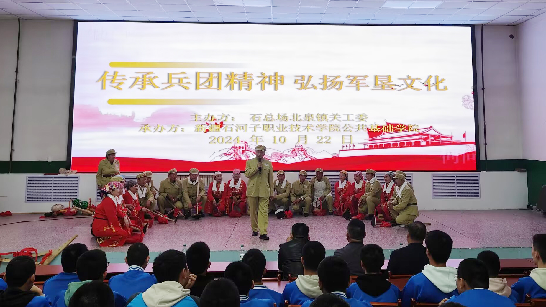 (杨凯 报道)2024年10月22日下午,由石总场北泉镇关工委主办、公共基础学院承办的军垦老兵进校园活动,在公共基础学院顺利开展。共有28名来自“军垦老兵演艺宣讲小分队”的队员为公共基础学院师生带来一场精彩宣讲,受到师生们的热烈欢迎。