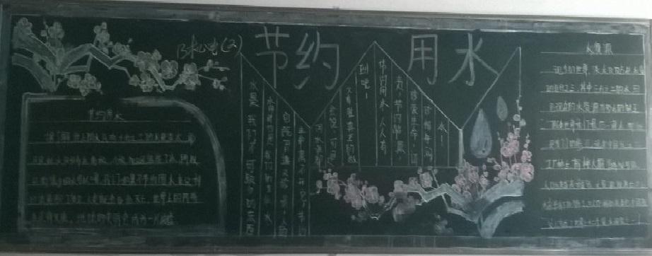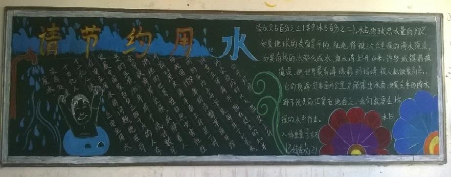在我学院的统一安排部署下,中职分院团总支学生会组织各班开展以“珍惜水、节约水、保护水”为主题的教育宣传活动。我中职分院抓住这个教育契机,于2014年5月14日以“节约用水”为主题的活动中,各班利用班会、板报向学生传递水资源信息,使学生了解到,水资源的重要性和节约水资源的方法。我国水资源短缺,是干旱发生频繁的国家,缺水比较严重的城市有110多个,全国城市日缺水量为1600万立方米,每年因为缺水影响工业产值2000亿元以上,影响城市人口约为4000万人。这些状况,都让学生意识到节约用水是多么重要。学生将与“节水”有关的重要信息梳理、提炼,并自己去发现生活中“节水”的小窍门,以文字和绘画的形式在板报上呈现。